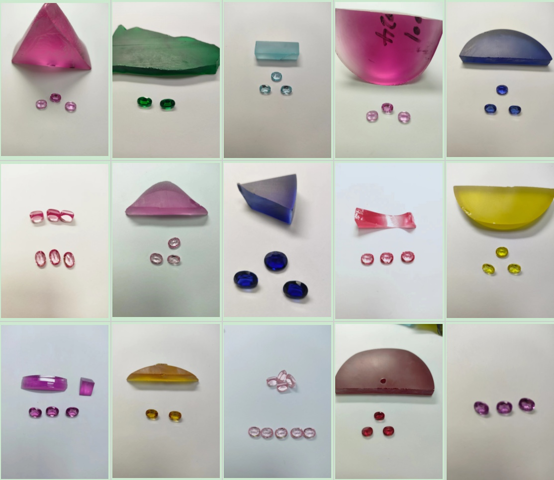 人工的に天然石と同じ化学組成で生成したルビー・サファイア結晶結晶育成時に濃度を変えて様々な色を再現し、天然石とは異なる味わいが特徴です。